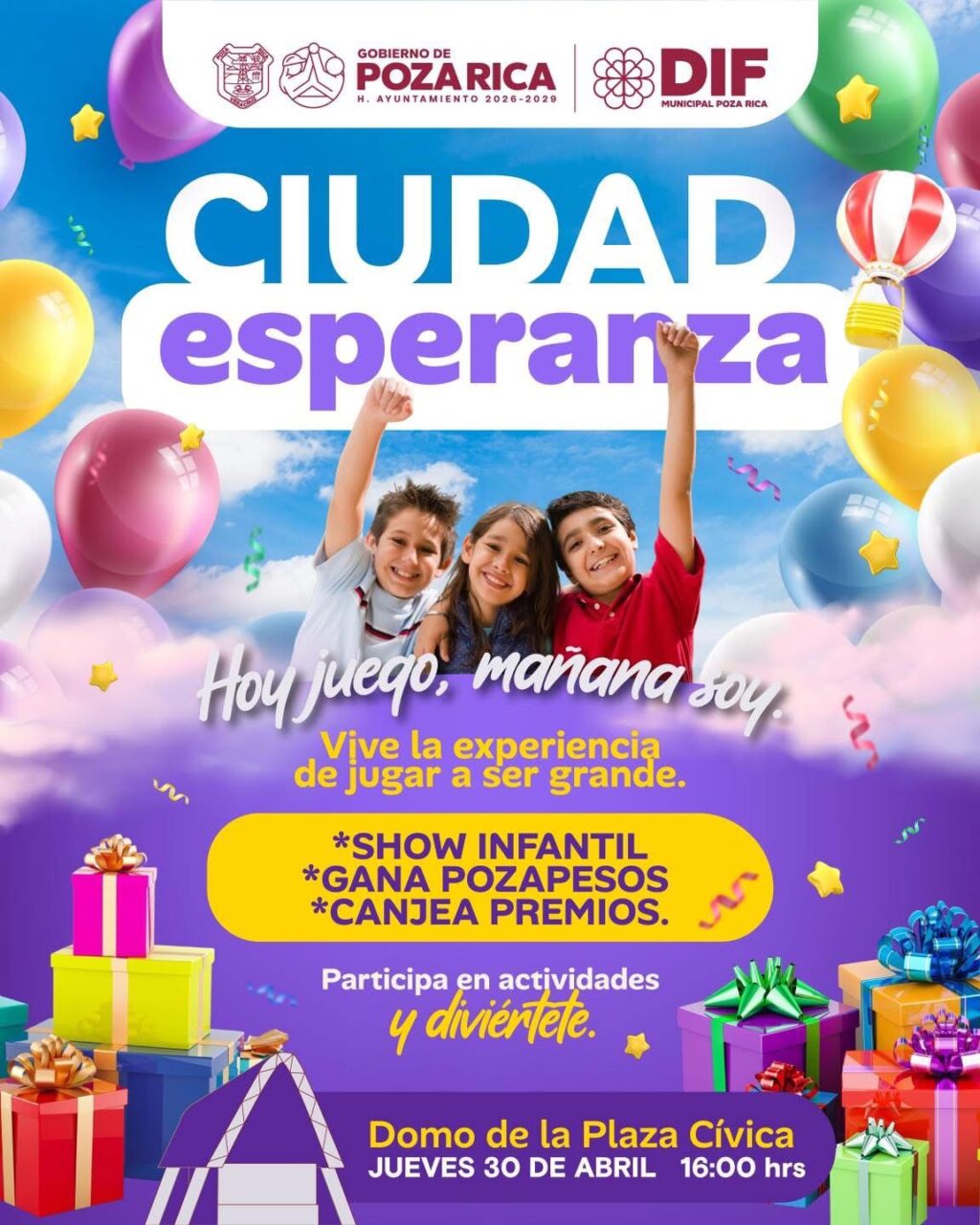 Como parte de esta gran celebración, la caravana recorrerá distintos puntos de la ciudad, llevando alegría y diversión a diversas colonias, para finalmente culminar el próximo 30 de abril en la Plaza Cívica con un magno festejo organizado por el Sistema DIF Municipal, titulado “Ciudad Esperanza: Hoy juego, mañana soy”, que se llevará a cabo a partir de las 4:00 de la tarde, como el gran cierre de estas actividades dedicadas a la niñez pozarricense.