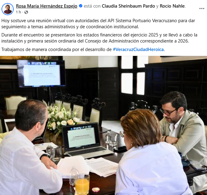 La conducción política empieza a reflejarse en los hechos. Y es que la alcaldesa de Veracruz, Rosa María Hernández Espejo, sostuvo una reunión virtual con autoridades del API Sistema Portuario Veracruzano, un ejercicio que dejó ver orden y rumbo en la relación institucional.