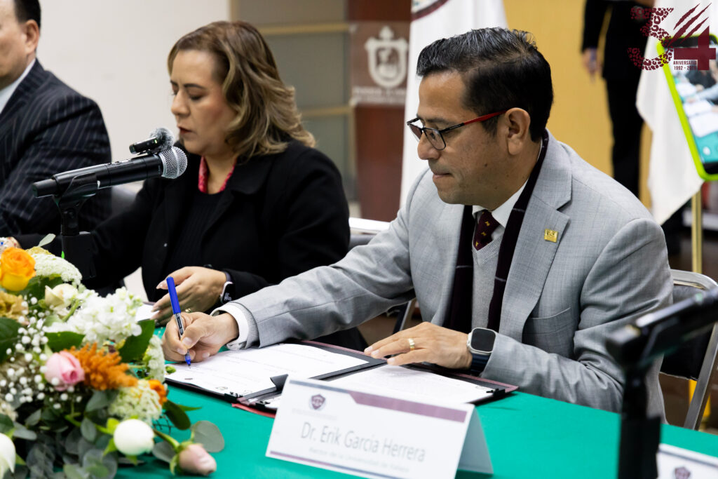 Por su parte, el Dr. Erik García Herrera subrayó que esta firma de convenio representa un paso significativo para la comunidad universitaria, al abrir nuevos espacios de aprendizaje práctico, investigación y desarrollo profesional, especialmente para las y los estudiantes del área de Derecho y disciplinas afines.