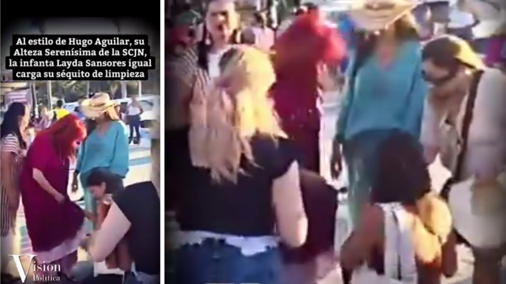 El pasado  jueves 2 de abril, en la Feria del Mar de Carmen 2026, se vivió una escena que hizo recordar al ministro presidente de la Suprema Corte de Justicia de la Nación (SCJN), Hugo Aguilar, cuando la gobernadora Layda Sansores observó y supervisó que dos mujeres que la acompañaban, una de las cuales se agachó y la otra se inclinó, le limpiaran la suciedad en la parte baja de su vestido.