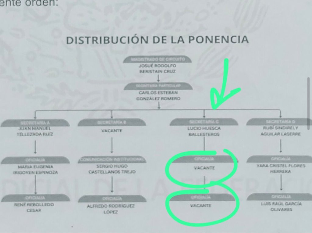 En la red social X textearon: “Hay una persona (masculino) discapacitada (que funge como secretario), que no puede teclear y está a un año y medio de jubilarse. El electo Josué Beristain le quitó a sus oficiales. ¿Está iba a ser la justicia cercana a la gente?”, concluye el post. Y anexaron la imagen de un organigrama en el que se aprecian los lugares de los dos oficiales que quitó ‘por sus pistolas’ para hostigar laboralmente a Lucio Huesca Ballesteros.