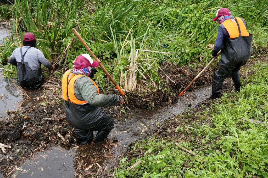 - Se realizan trabajos permanentes para el libre flujo pluvial en canales y drenes.