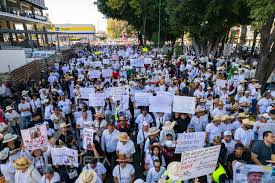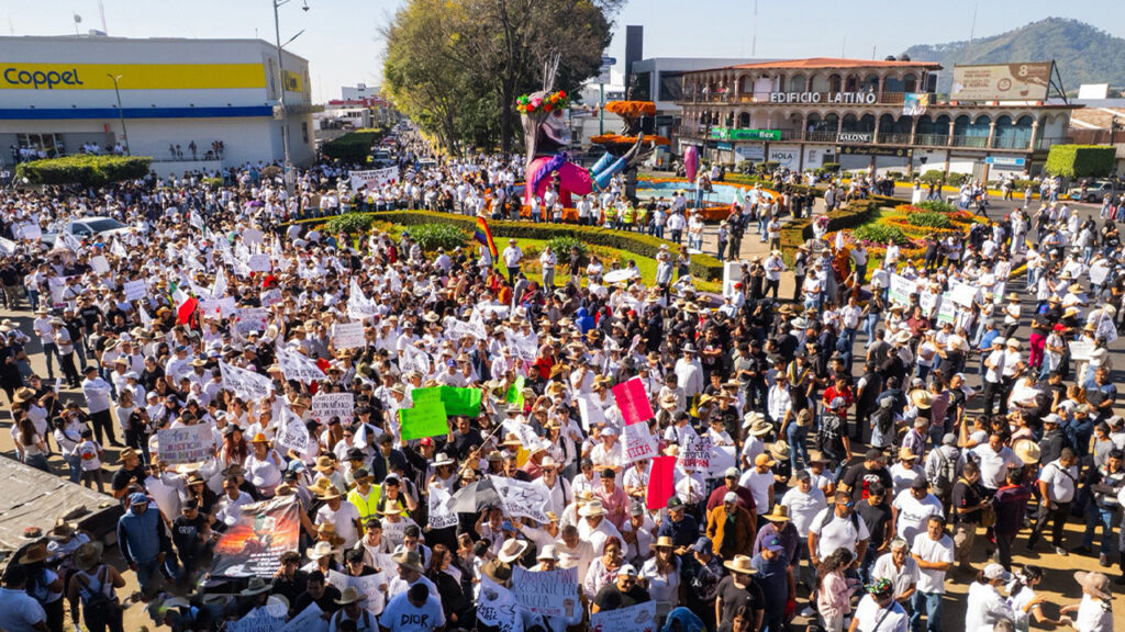La movilización, integrada por habitantes vestidos de blanco y algunos portando sombreros en señal de luto, partió del Paseo Lázaro Cárdenas con rumbo a la Plaza Morelos, donde se espera un mensaje de la nueva presidenta municipal, Grecia Quiroz, en lo que sería su primera aparición pública tras asumir el cargo.