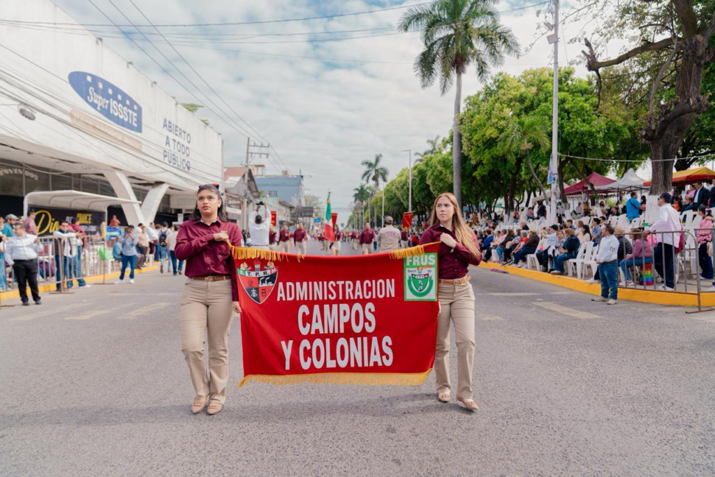 El desfile fue encabezado por la Presidenta Municipal, Adanely Rodríguez, acompañada por la Diputada Local Laura Mejía, junto a integrantes del Comité Ejecutivo de la Sección 30 del Sindicato de Trabajadores Petroleros de la República Mexicana (STPRM), encabezados por el C. José Juan Soni Solís, Secretario del Interior y Acuerdos., además del cuerpo edilicio del Honorable Ayuntamiento de Poza Rica, quienes, con su presencia, dieron realce institucional a esta importante conmemoración.