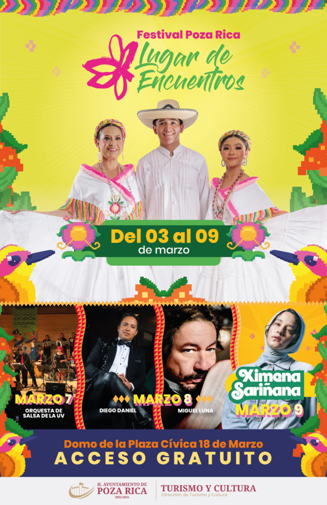Poza Rica, Ver. – Autoridades municipales de la administración que preside Fernando Remes Garza, anunciaron que la ciudad de Poza Rica se prepara para vivir una semana llena de arte, música y cultura con la séptima edición del Festival Lugar de Encuentros, uno de los eventos culturales más importantes de la ciudad. Del 3 al 9 de marzo, la ciudad se convertirá en el epicentro del talento de talla internacional, nacional y local, con una cartelera que incluye la presentación de Ximena Sariñana, con la expectativa de una fuerte derrama económica gracias al turismo.