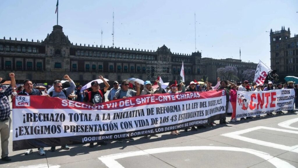 Por su parte, integrantes de la Coordinadora Nacional de Trabajadores de la Educación (Cnte) amagaron con iniciar un plantón de 72 horas, entre los días 19 y 21 de marzo, en el Zócalo capitalino, en caso de que sus demandas en torno a la Ley del Issste no fueran escuchadas.