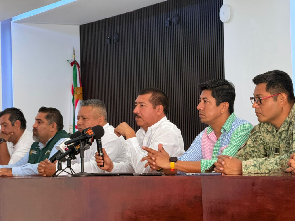 En la conferencia de prensa estuvieron presentes además de los ediles, funcionarios municipales, el jefe de la Jurisdicción Sanitaria número 2, Cuauhtémoc Pérez Juárez, el coordinador regional de Centros de Salud IMSS-Bienestar, Josué Pérez Hernández, el capitán Salvador Reyes Díaz, representante del 39/o Batallón de Infantería, sargento Hermilo González Rivera, representante de Guardia Nacional, y el delegado de la Policía Estatal, Alejandro Omar Conde, entre otros.
