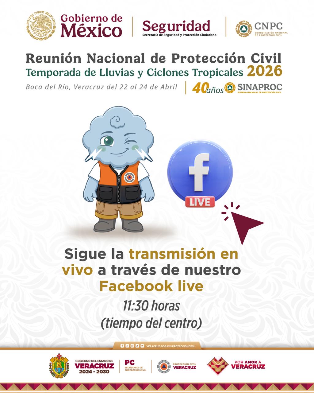 Al iniciar este día y hasta el viernes 24 la Reunión Nacional de Protección Civil por la Temporada de Lluvias y Ciclones Tropicales 2026, en el WTC como sede y de anfitrión al Gobierno del Estado, con la participación de los integrantes de los sistemas estatales y municipales de las treinta y dos (32) entidades, con el fin de fortalecer la coordinación con el Gobierno de la República en el marco del “40 aniversario del Sistema Nacional de Protección Civil”, se imparten