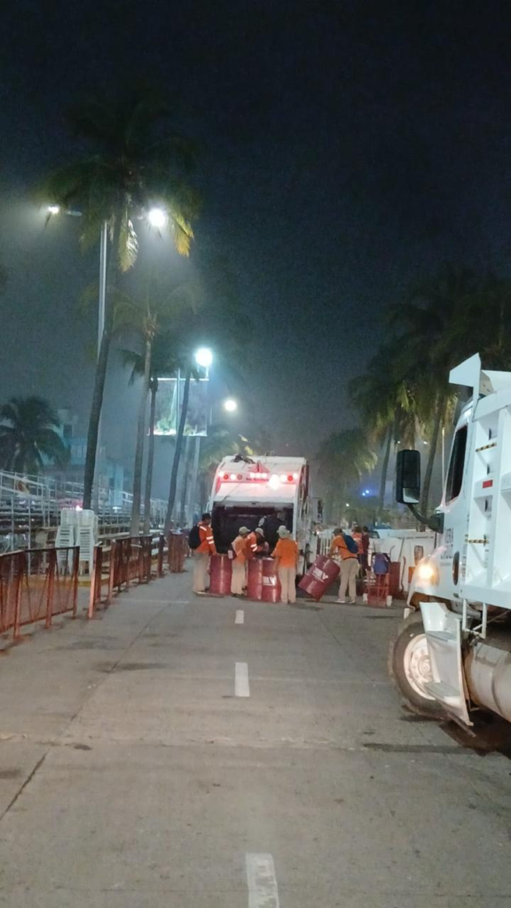 Para cumplir con la encomienda, las cuadrillas de Limpia Pública se encuentran laborando en tres turnos, cubriendo las 24 horas del día, incluso horas extras en el turno nocturno, de 9 de la noche a 5 de la mañana, como parte del operativo especial de limpieza durante el Carnaval de Veracruz 2026, independiente del trabajo diario de recolección normal en toda la ciudad.