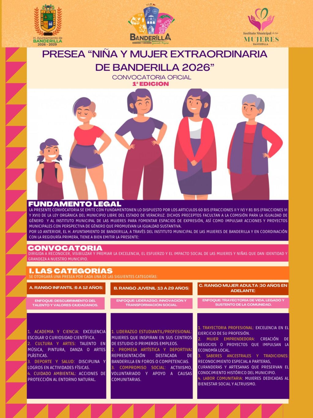 Banderilla, Ver.- Con el propósito de reconocer, visibilizar y premiar la excelencia, esfuerzo y el impacto social que realizan las mujeres y niñas de Banderilla, cuyo esfuerzo y trabajo le dan identidad y grandeza a nuestro municipio, se lanzó la convocatoria para la entrega de la presea: “Niña y Mujer Extraordinaria de Banderilla 2026”.