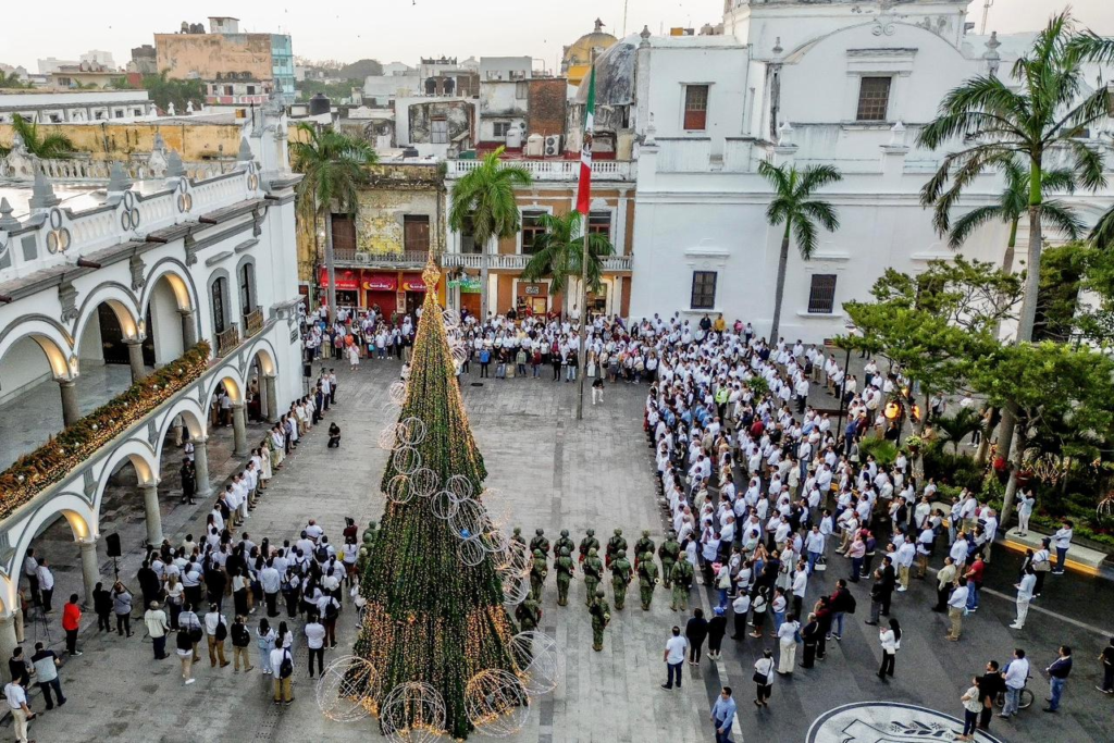 Como parte del fortalecimiento de los valores cívicos y del respeto a los símbolos patrios, se realizaron los honores a la Bandera Nacional en el Zócalo de la Heroica Ciudad de Veracruz, un acto que reafirma la identidad nacional y promueve la unidad y el respeto entre la ciudadanía.