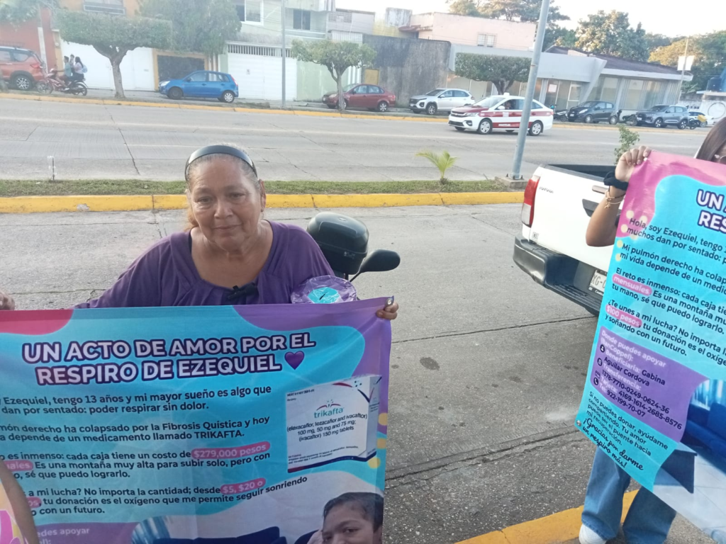 Por tal motivo, sus familiares, junto con su abuelita, han salido a las calles de Minatitlán a solicitar apoyo económico a la ciudadanía en general, con lonas que portan con la leyenda: “Un acto de amor por el respiro de Ezequiel”, llevan a cabo esta cruzada a fin de garantizarle un día más de vida