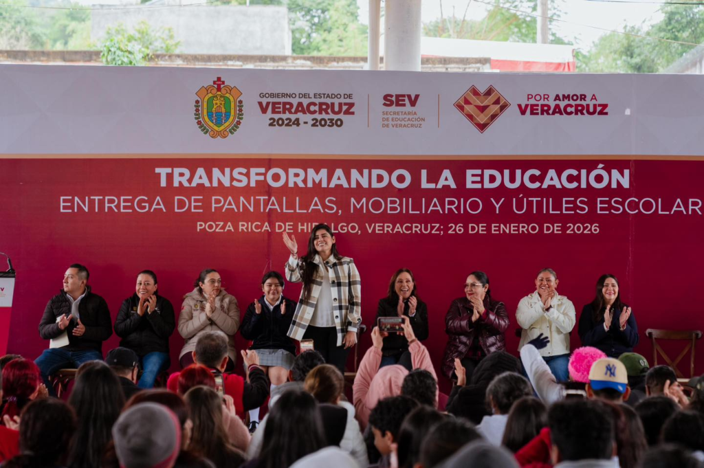 Este lunes 26 de enero, estuvo en Poza Rica acompañada de la alcaldesa Adanely Rodríguez y la titular de la SEV, Claudia Tello.