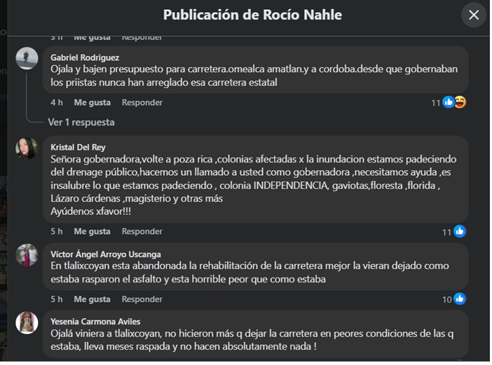 Señora gobernadora,volte a poza rica ,colonias afectadas x la inundacion estamos padeciendo del drenage público,hacemos un llamado a usted como gobernadora ,necesitamos ayuda ,es insalubre lo que estamos padeciendo , colonia INDEPENDENCIA, gaviotas,floresta ,florida , Lázaro cárdenas ,magisterio y otras más