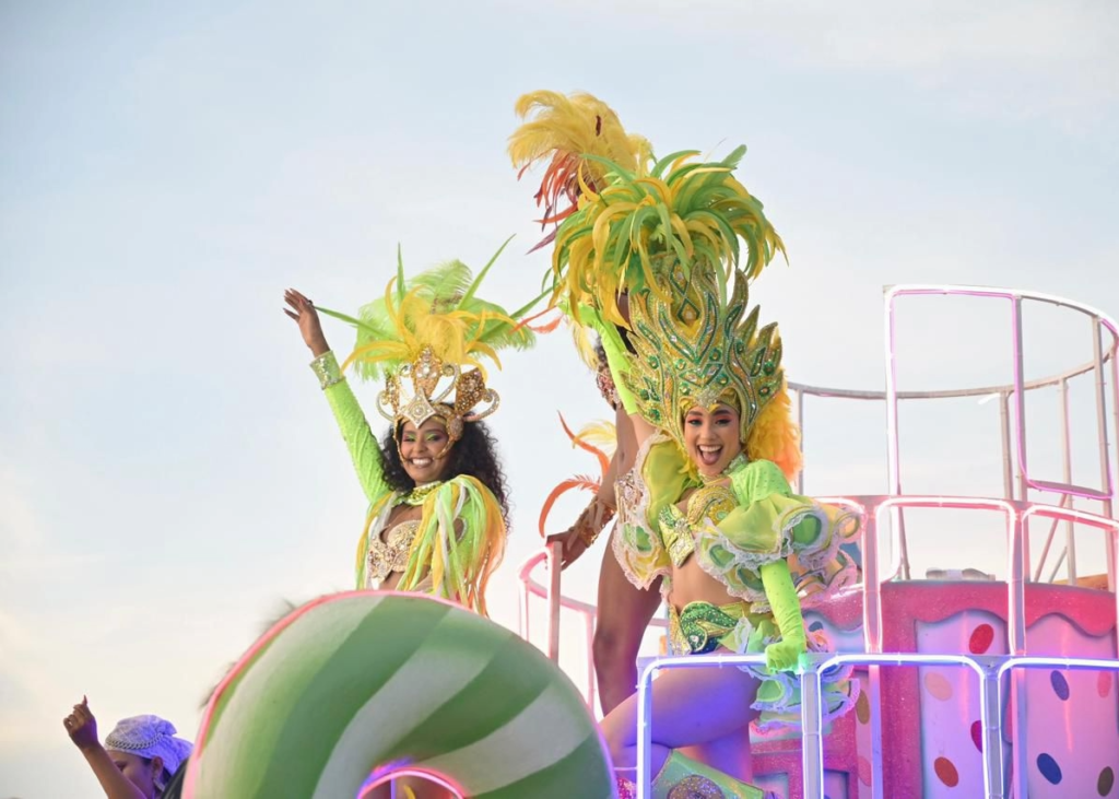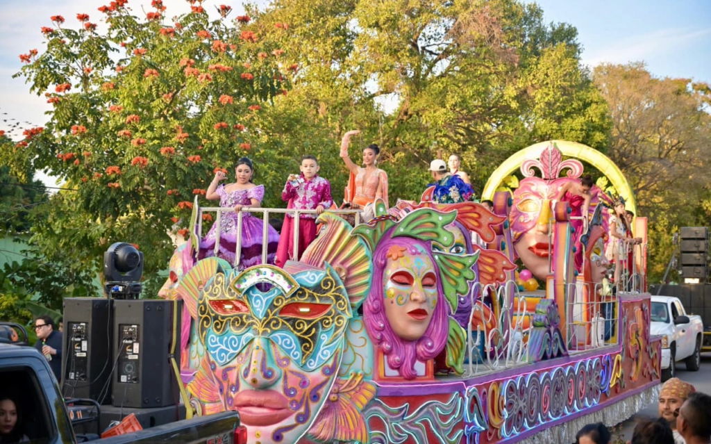 El carro alegórico de la Corte Real electa del Carnaval 2026, las Bastoneras de Susy, Los Clásicos del IMSS, Salseros del Médano, Batucada Ubuntu y los Embajadores de la Alegría 2026 desfilaron por la avenida Justino Sarmiento al ritmo de la música ante las familias reunidas.
