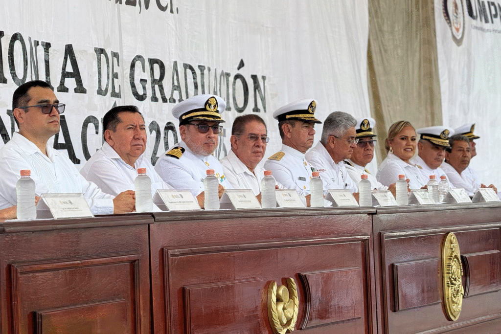 El subsecretario de gobierno, José Manuel Pozos Castro, representó a la gobernadora del estado, ingeniera Rocío Nahle, en la Ceremonia de Graduación de los Alumnos de Formación de Pilotos y Maquinistas Navales de la Generación 2021-2025, de la Escuela Náutica Mercante de Veracruz “Capitán de Altura Fernando Siliceo y Torres”