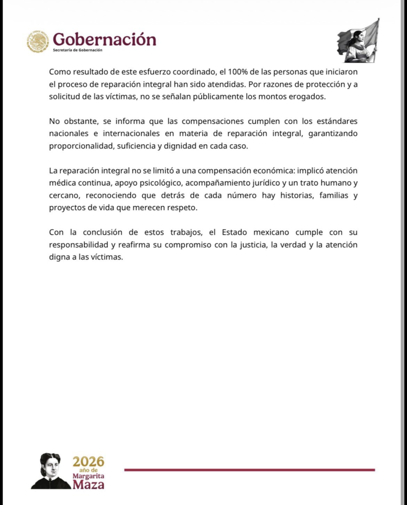 Afirma que el Estado asumió el caso con responsabilidad desde el primer momento y con esto, asegura se cierra el proceso de atención a víctimas.