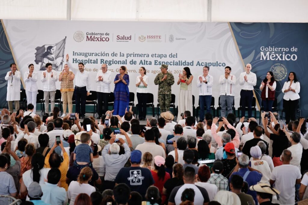 Acapulco de Juárez, Guerrero.- La Presidenta de México, Claudia Sheinbaum Pardo, y el director general del Instituto de Seguridad y Servicios Sociales de los Trabajadores del Estado (ISSSTE), Martí Batres Guadarrama, inauguraron la primera etapa del Hospital Regional de Alta Especialidad (HRAE) de Acapulco, Guerrero, cuya inversión total fue de alrededor de 3 mil millones de pesos y beneficiará a 630 mil derechohabientes de Costa Chica, Costa Grande, La Montaña, Tierra Caliente, Acapulco, Región Centro y Región Norte, así como al estado de Oaxaca.