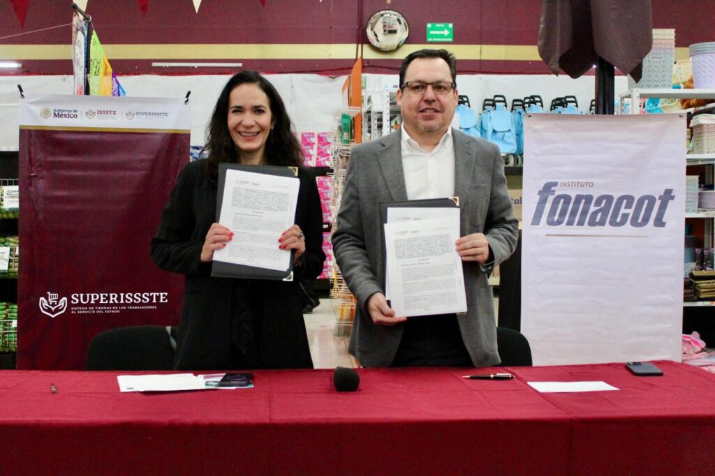 El acuerdo fue suscrito por la directora general de SUPERISSSTE, Dunia Ludlow Deloya, y el coordinador general comercial del Instituto FONACOT, Salvador Gazca Herrera, en representación de la directora general de FONACOT, Laura Fernanda Campaña Cerezo.