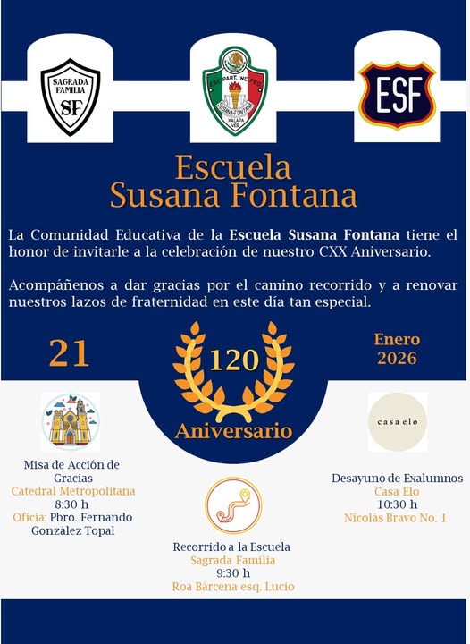Qué bueno que exalumnos de “las Ramos” hayan realizado un homenaje para conmemorar 120 años de la fundación de la escuela “Susana Fontana” pues no sólo es importante agradecer su contribución a la sociedad sino tener presente que toda contribución a mejorar la educación de los mexicanos es una aportación muy valiosa para impulsar la libertad y el bien común. Nos vemos en la celebración eucarística en la Catedral Metropolitana de Xalapa este 21 de enero de este 2026 a las 8:30 de la mañana para orar y agradecer por todas las maestras y maestros que entregan y entregaron su vida para hacer mejores ciudadanos.