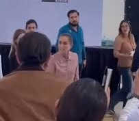 El momento fue capturado en un video de apenas 15 segundos, que se viralizó en las redes sociales. La mandataria mexicana estaba en esta demarcación para presentar el Plan de Justicia para Trabajadores Agrícolas, que incluyó la puesta en marcha de un Hospital con especialidades, la rehabilitación de 20 centros de salud; la modernización de escuelas y acciones de vivienda y regularización.