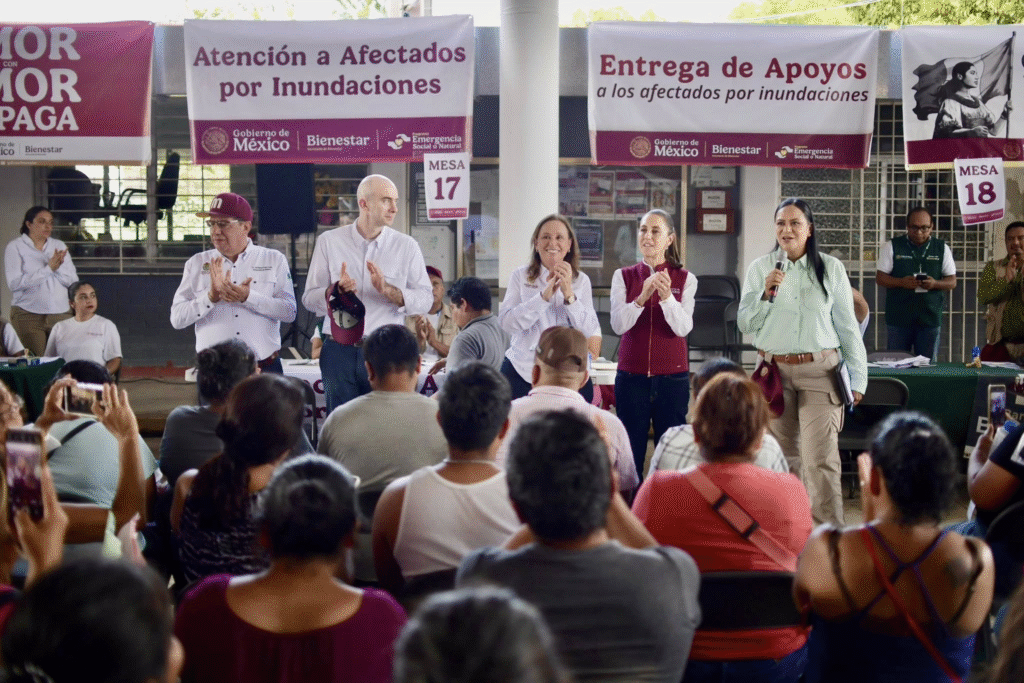 Claudia Sheinbaum y Rocío Nahle elogiaron la coordinación del subsecretario Pozos Castro que prácticamente ha vivido en Álamo los últimos 30 días y su presencia ha rendido frutos. Diez días después de esa visita Álamo está en pie. Sus calles, escuelas, caminos, mercados y edificios públicos están funcionando con normalidad.