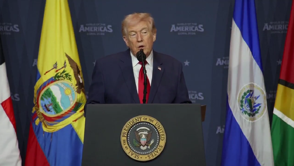 Miami, Florida.- En un discurso pronunciado durante la Cumbre “Escudo de las Américas” celebrada este sábado en Doral, Florida, el presidente de Estados Unidos, Donald Trump, reiteró sus acusaciones contra los cárteles de la droga en México, afirmando que estos grupos criminales “gobiernan” el país vecino y son responsables del flujo masivo de drogas hacia territorio estadounidense.