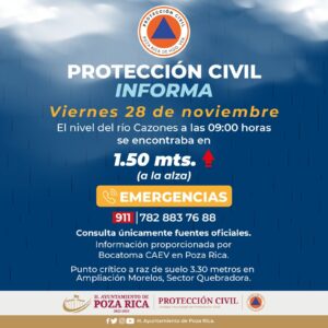 Protección Civil de Poza Rica informa a la población sobre nivel del río Cazones