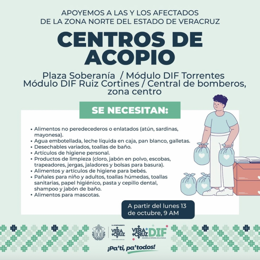 ANTE LA desgracia ocurrida en muchas poblaciones del norte de la entidad veracruzana, podemos destacar, con especial orgullo, las demostraciones de solidaridad de todos los veracruzanos con quienes han perdido todo ante los embates de la naturaleza. Han sido evidentes las muestras de apoyo que se manifiestan a cada momento con aquellas familias que hoy no tienen nada. Los centros de acopio instalados en muchos lugares, se han visto colmados con la ayuda que es entregada a quienes lo necesitan urgentemente.