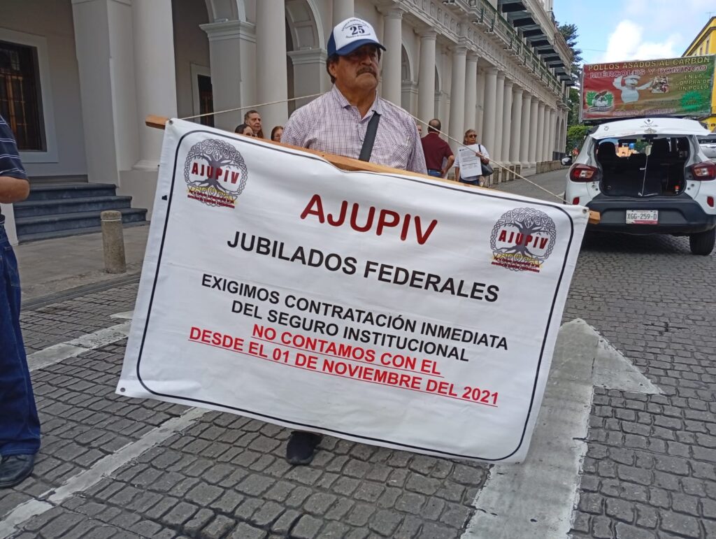 Irineo Pérez Melo.- Integrantes de la Agrupación Estatal de Jubilados y Pensionados del ISSSTE en el Estado de Veracruz, A. C., reiniciaron de nueva cuentan sus plantones frente a palacio de gobierno y bloqueos de la Avenida Juan de la Luz Enríquez, en esta ocasión, por el incumplimiento de los compromisos firmados con el gobierno estatal el pasado 16 de mayo, en torno al pago de seguro de vidas institucionales a familiares de maestros fallecidos y la contratación de una aseguradora para agilizar el pago, en lo sucesivo, de este beneficio.